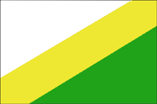 The district flag is a cloth with a width-to-length ratio of 2:3, and a composition of the district's coat of arms is spread across its entire surface, with the heraldic gold replaced by yellow and the heraldic silver by white.