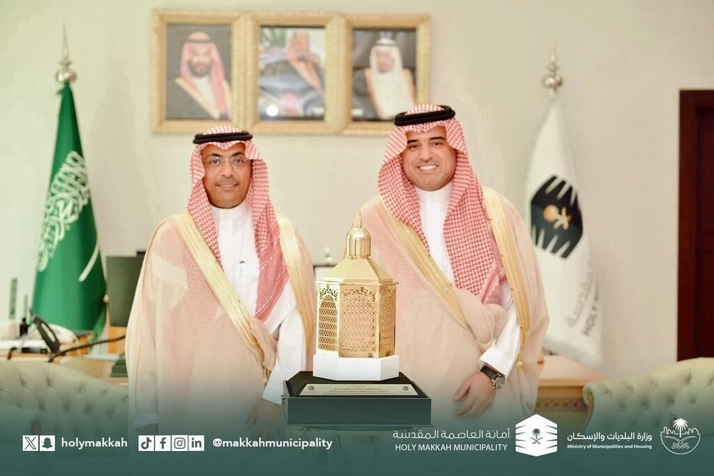 The flags of the Mecca (Makkah) Chamber are white with the logo and name.