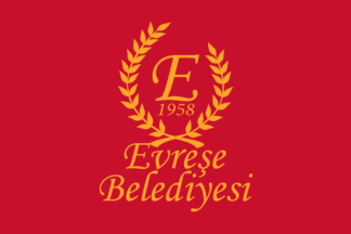 The flag of Evreşe (photo) is white with the municipality's emblem. "Belediyesi" means "Municipality".