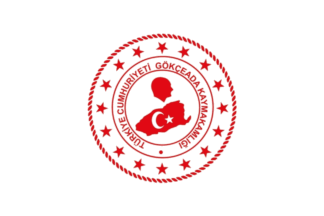 The flag of Gökçeada (photo) is white with the municipality's emblem. "GÖKÇEADA BELEDİYESİ" means "Gökçeada Municipality".