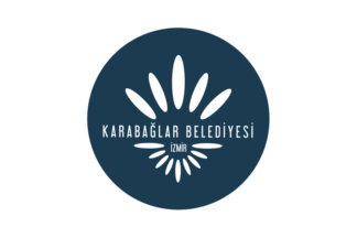 The flag of Karabağlar (photo, photo), also used vertically (photo), is white with the municipality's emblem. The vertical flag is also used with a blue background (photo). "Belediyesi" means "Municipality".