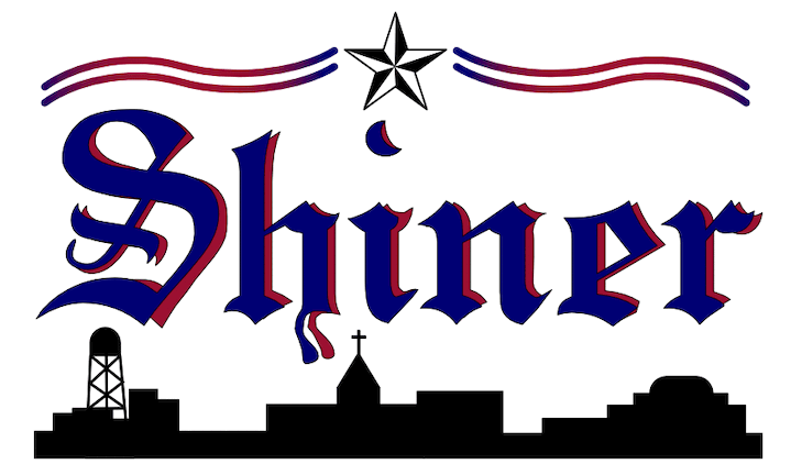 The logo shows the silhouette of the city on a sunrise. Above the city is a outline of Texas, with a star locating Shiner in the state. At the bottom of the logo is a crescent moon which separates the incorporation year.
