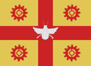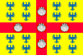 - The flag of the Cantabrian independence movement showing a wheel-like emblem that is